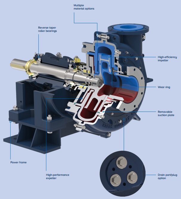 Bơm UMD-R là phiên bản bơm bùn được lót hoàn toàn bằng cao su, có vỏ tách rời, đặc biệt phù hợp với dải lưu lượng lớn và ăn mòn cao.